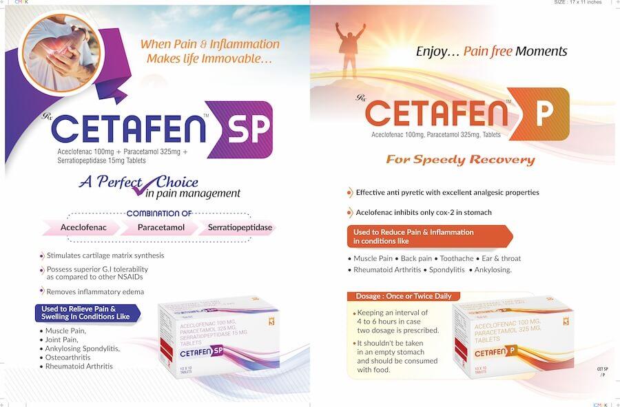Cetafen-SP: Aceclofenac Paracetamol & Serratiopeptidase Tablets