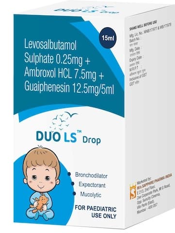 Duo LS is a versatile syrup with Levosalbutamol for relaxing airways muscle and increasing air flow to the lungs; Guaiphenesin, an expectorant for increasing sputum production; and Ambroxol, a mucalytic agent to liquefy thick mucus.